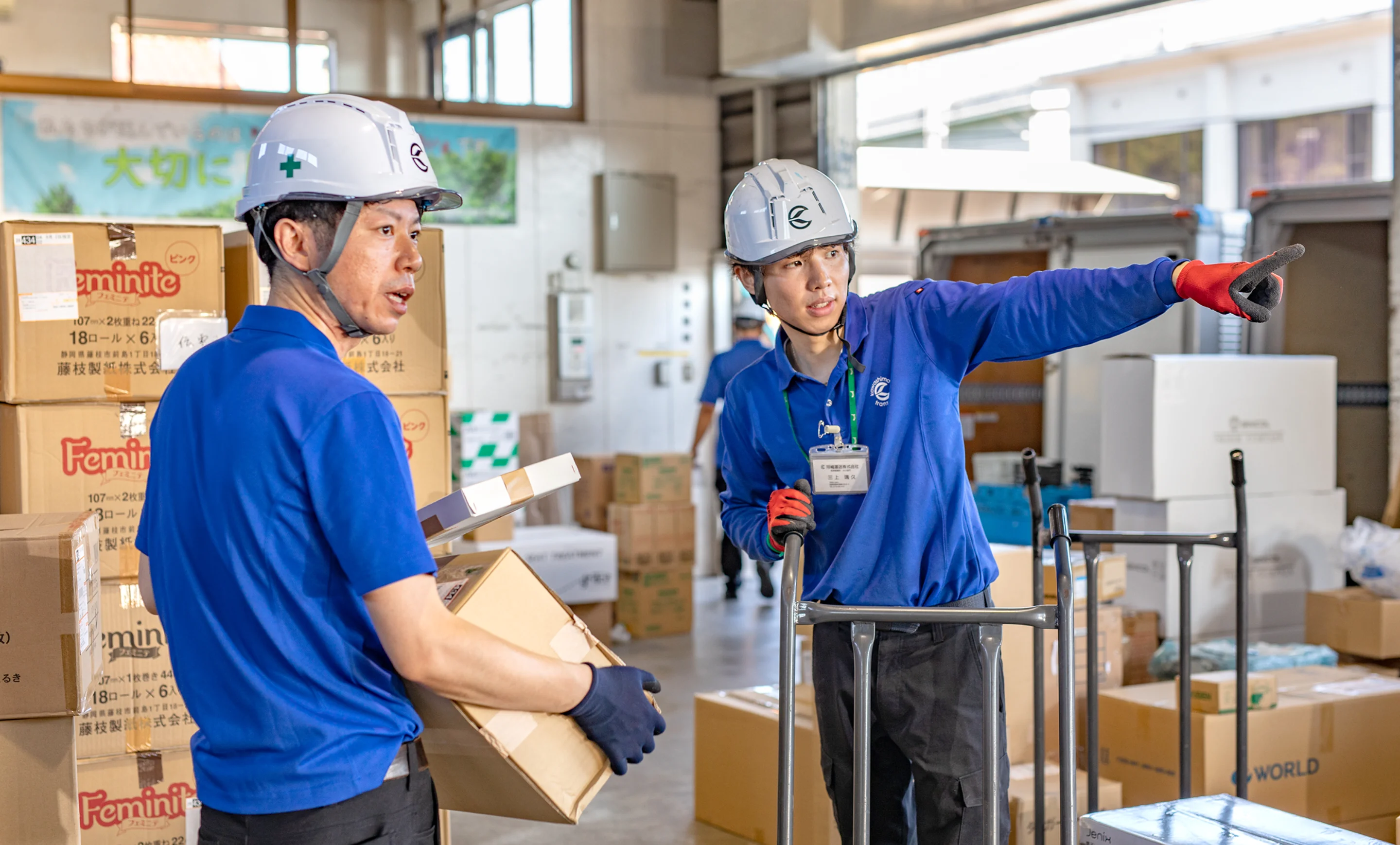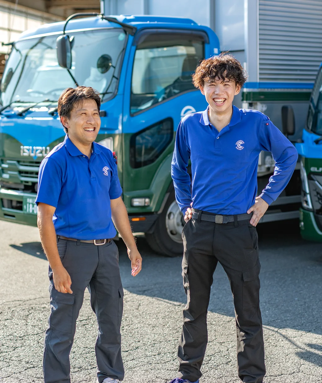 未経験の場合運転免許は必須ですが、小型のトラックからはじめ、準中型、中型、大型へとステップアップ可能です。資格取得の補助も行いますし、先輩が横乗りして丁寧に教える仕組みがあります。経験者の方はもちろん、即戦力として活躍いただけます。