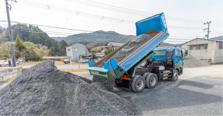 河嶋運送では資材の運搬だけでなく、砕石、砂、真砂土などの各種建設資材の販売も行っております。材料の仕入れ+運送をワンセットでご発注いただけますので、お客様の業務効率化にも貢献いたします。