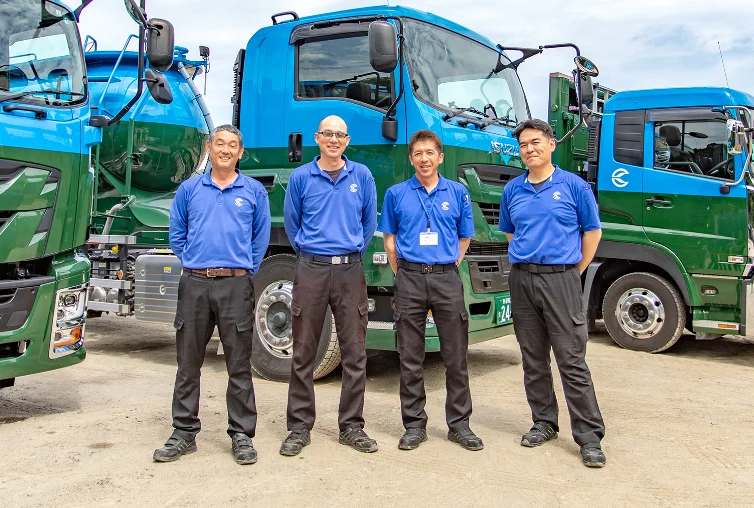 土砂・砕石・資材などをダンプやタンクローリーで運ぶ建設関連輸送の業務。一般的なイメージと異なり、比較的自由で力仕事はなく、女性でも可能。車両も仮眠スペースは冷暖房など快適に設計されています。